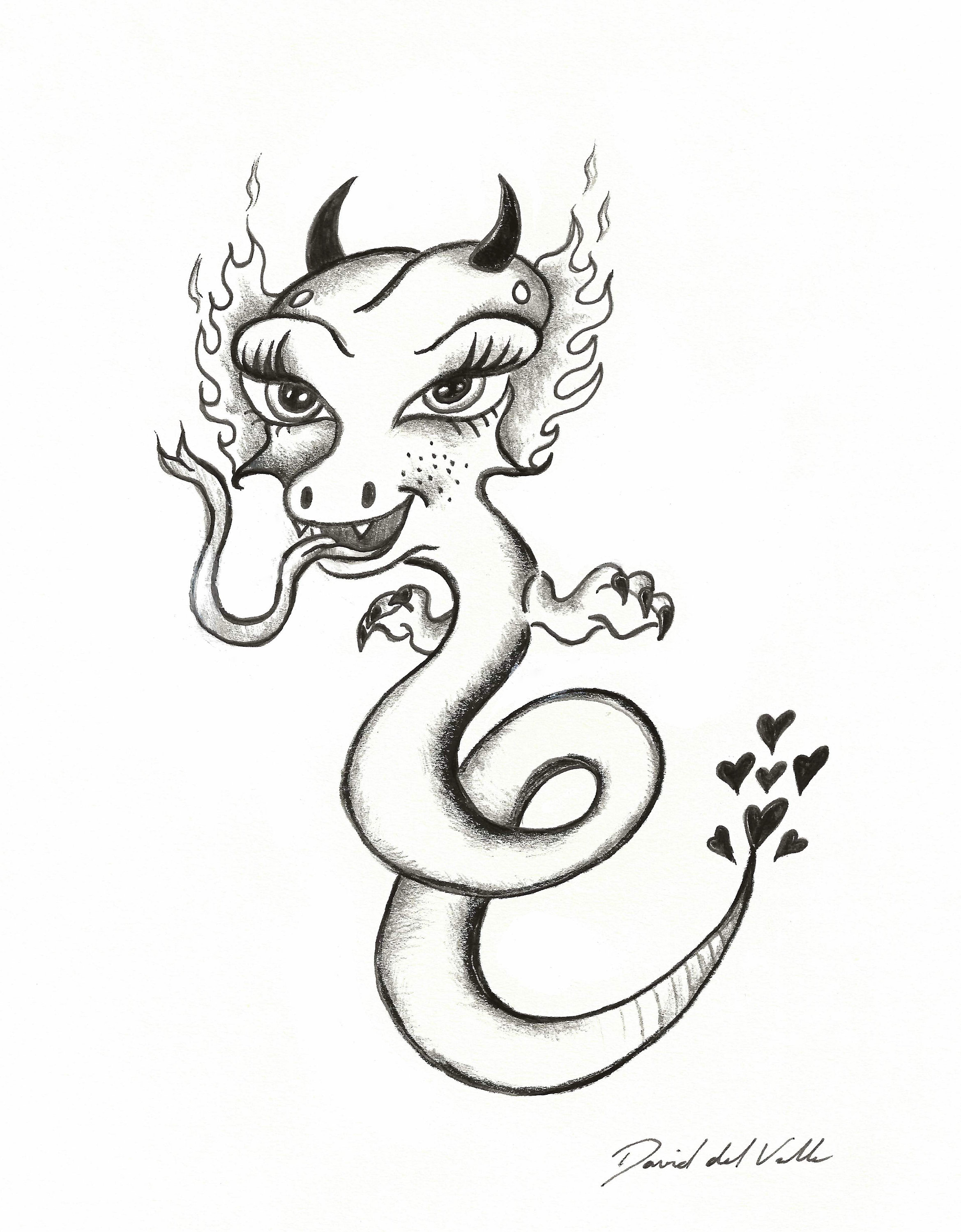 Lady Dragon Drawing Tattoo Flash Design Fantasy Mystical Etsy Uk